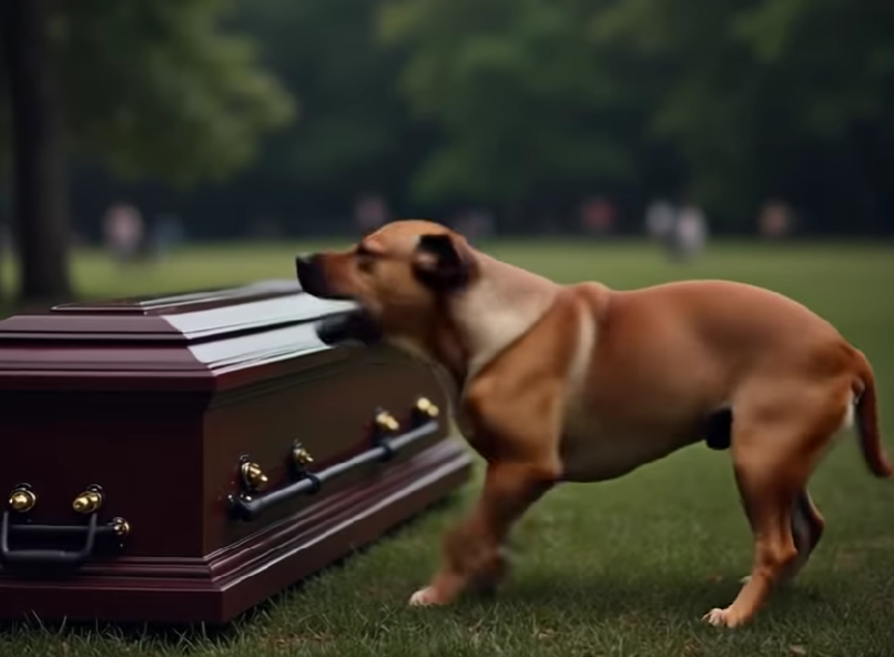 The dog, with eyes full of sadness, crouched next to the coffin, as if he wanted to offer comfort for the last time. There were no words needed; The scene alone spoke of a bond that surpasses human comprehension, a language of love and fidelity that only animals seem to master.