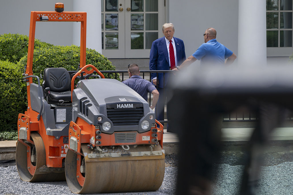 On June 18, Trump was photographed supervising the installation of one of the massive flagpoles, speaking with construction workers just steps away from the Rose Garden itself.