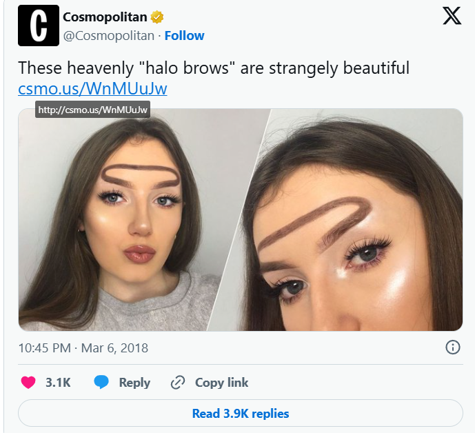 Yet Cosmopolitan called the “heavenly halo brows” “strangely beautiful.”